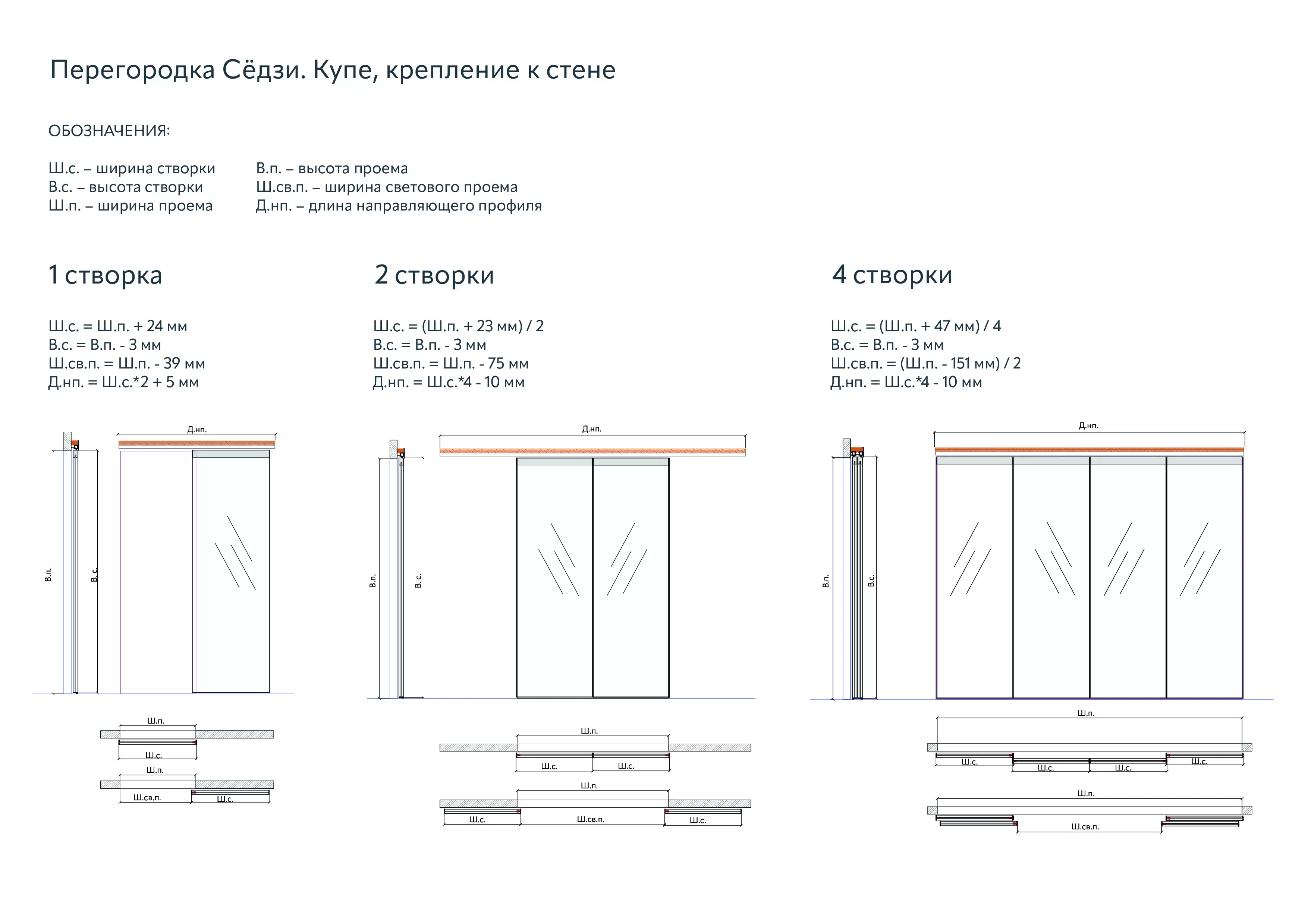 Количество створок от 1 до 4.